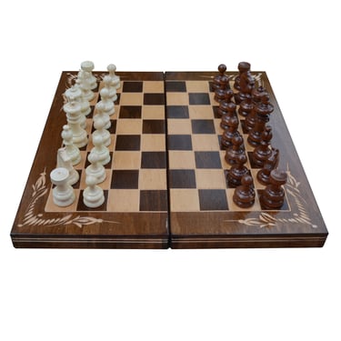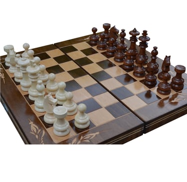 Discover the joy of play and craftsmanship with this beautifully designed 2-in-1 Wooden Chess & Backgammon set! Expertly made, this foldable, travel-ready board includes everything you need for hours of classic fun.